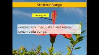 Struktur dan Fungsi Bagian Tumbuhan Animasi Bunga dan Buah materi IPA SD kelas IV.. Struktur bunga terdiri atas Putik Benang sari Mahkota Kelopak Dasar ...